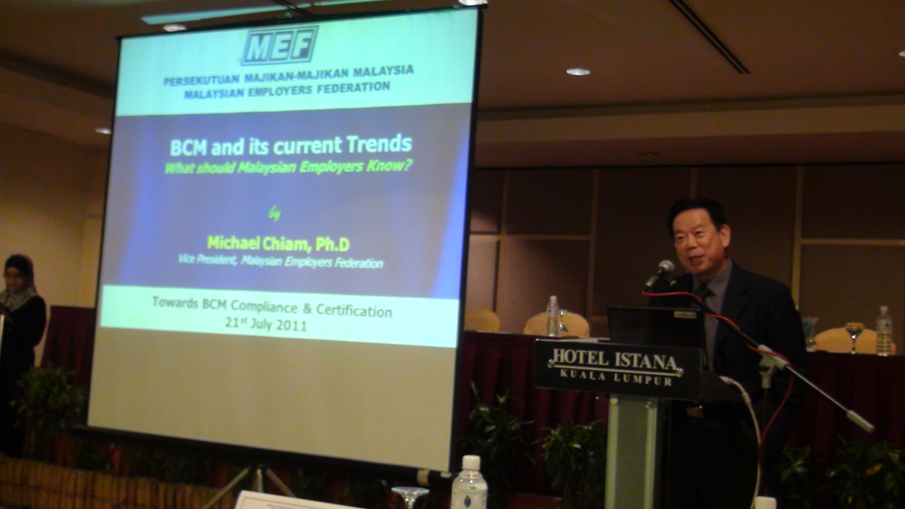 SIRIM Berhad has organized the seminar ‘Towards Business Continuity Management Compliance & Certification’ to provide organisations with a clear and correct approach in strategising, developing and implementing BCM based on industrial practices on 21st July 2011 at Hotel Istana.